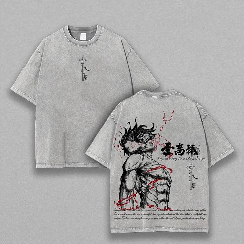 Otakuri "Eren Yeager Attack Titans Power" Attack on Titan V5 Vintage Washed Oversized T-Shirt
